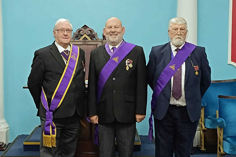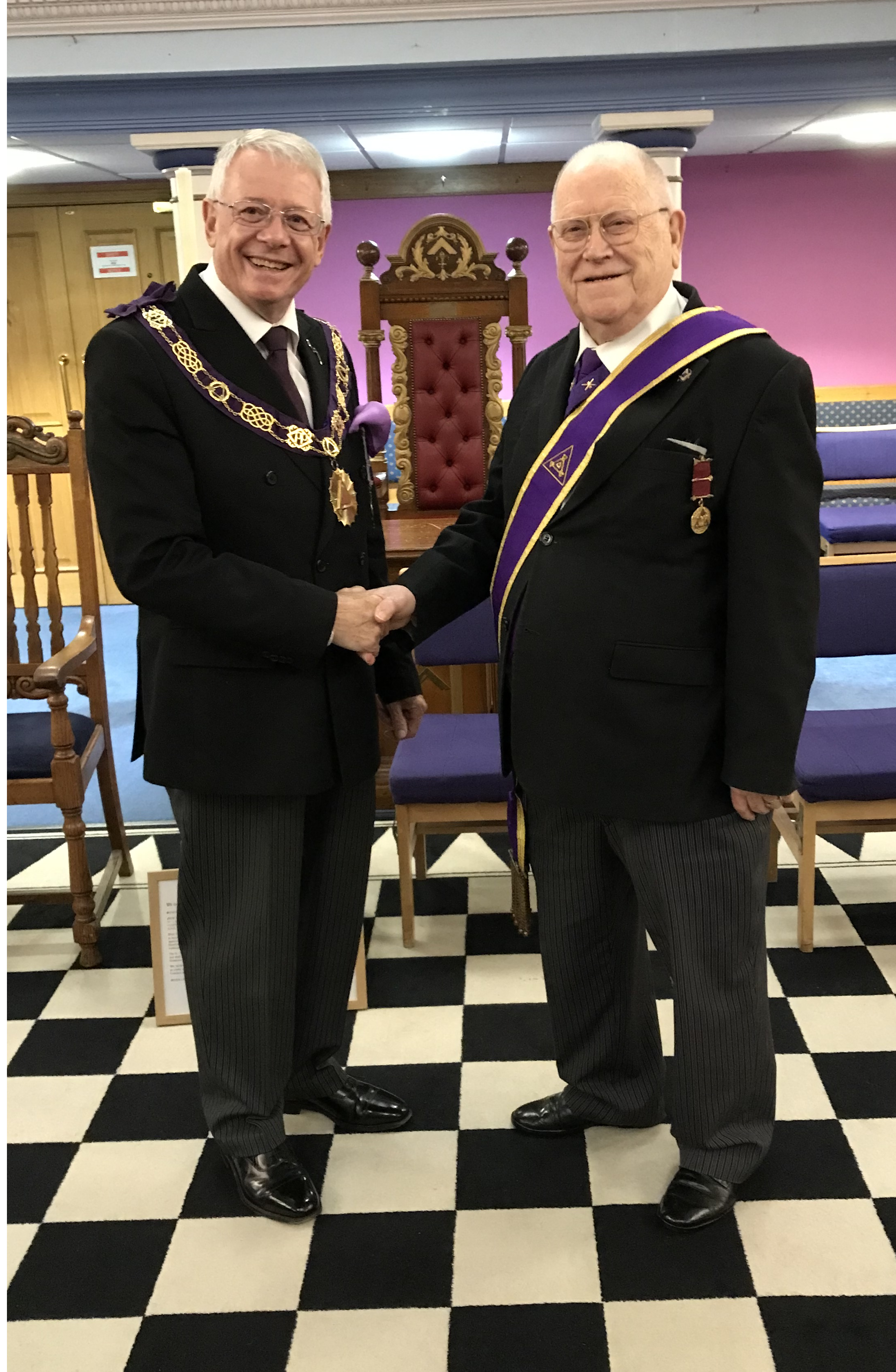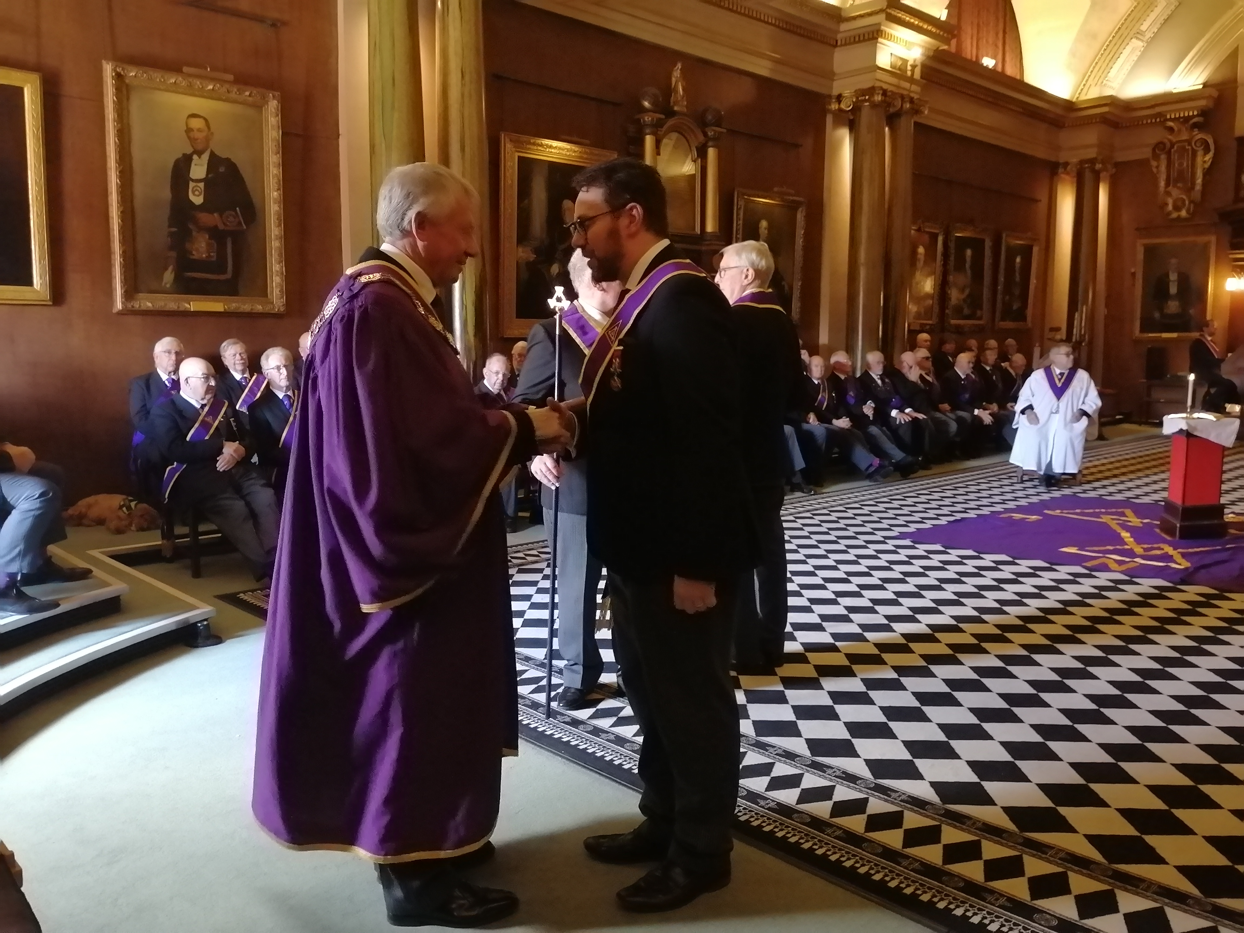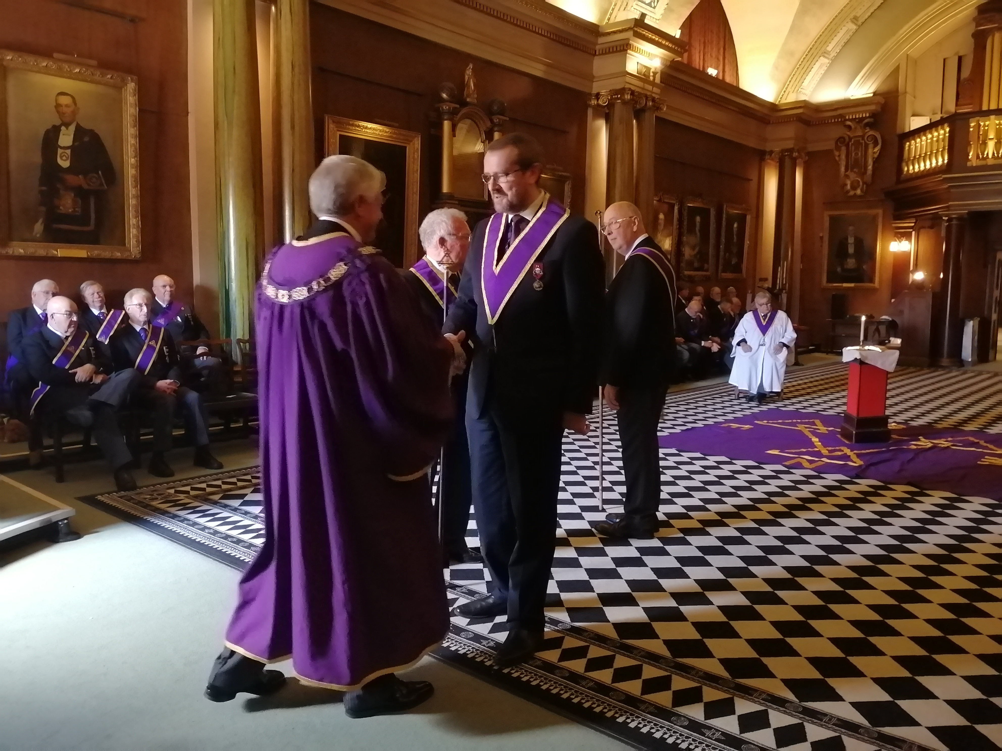 Mike Beesley, Regional Governor for the North West, travelled from Leyland to Wallasey with Tony Hall to attend a meeting of Archbishop Plegmund Conclave No. 34 at the Masonic Hall.