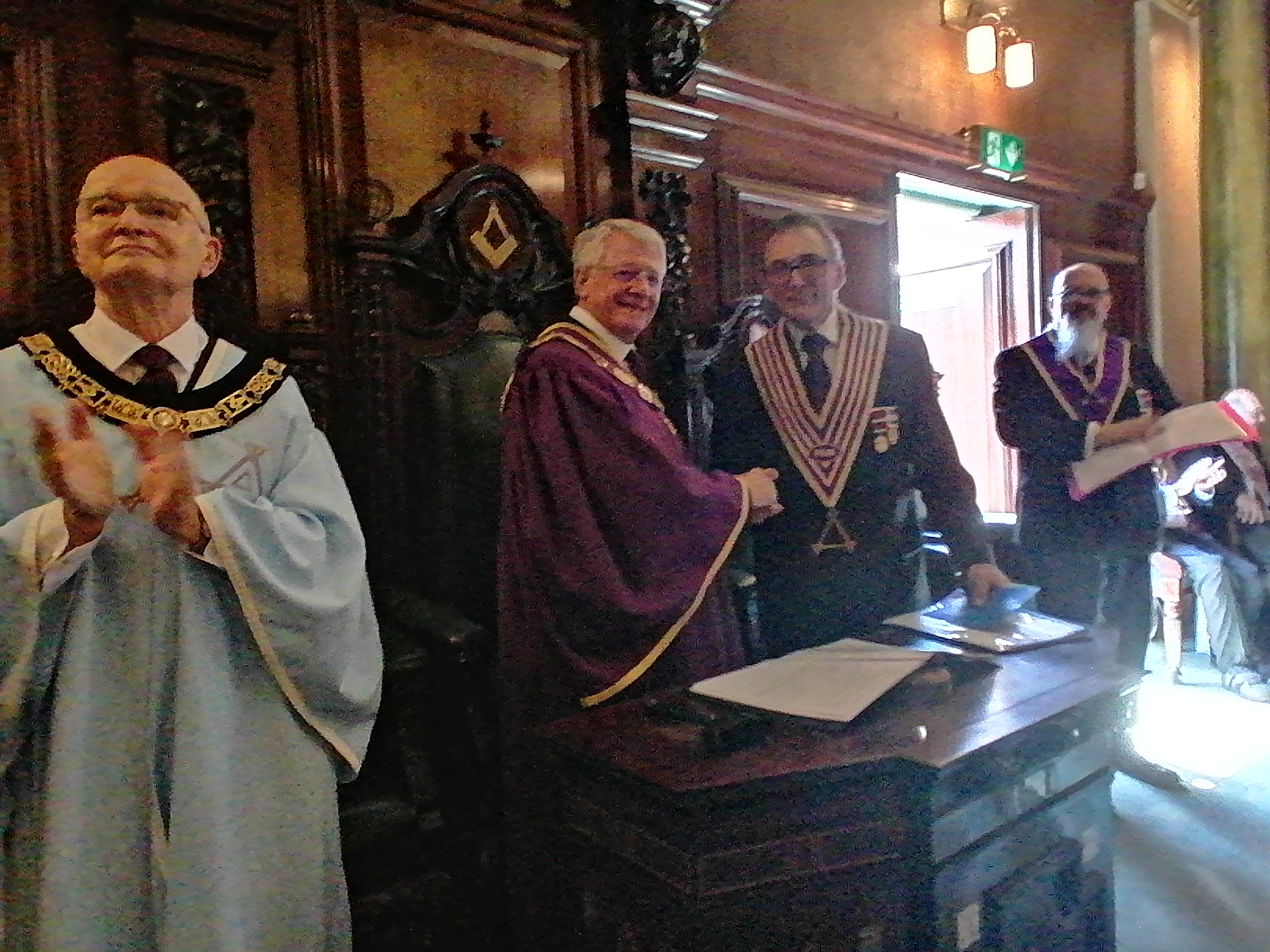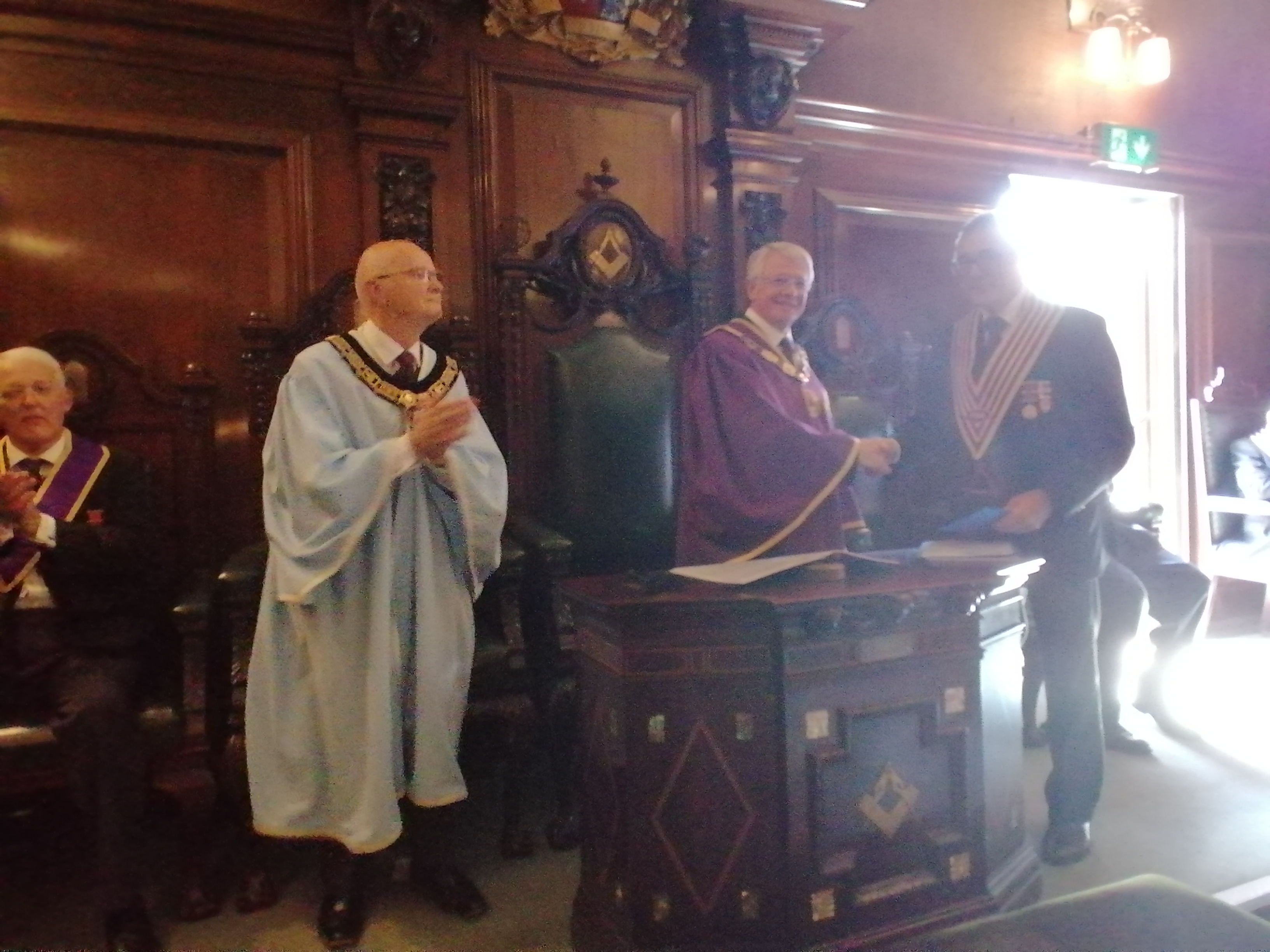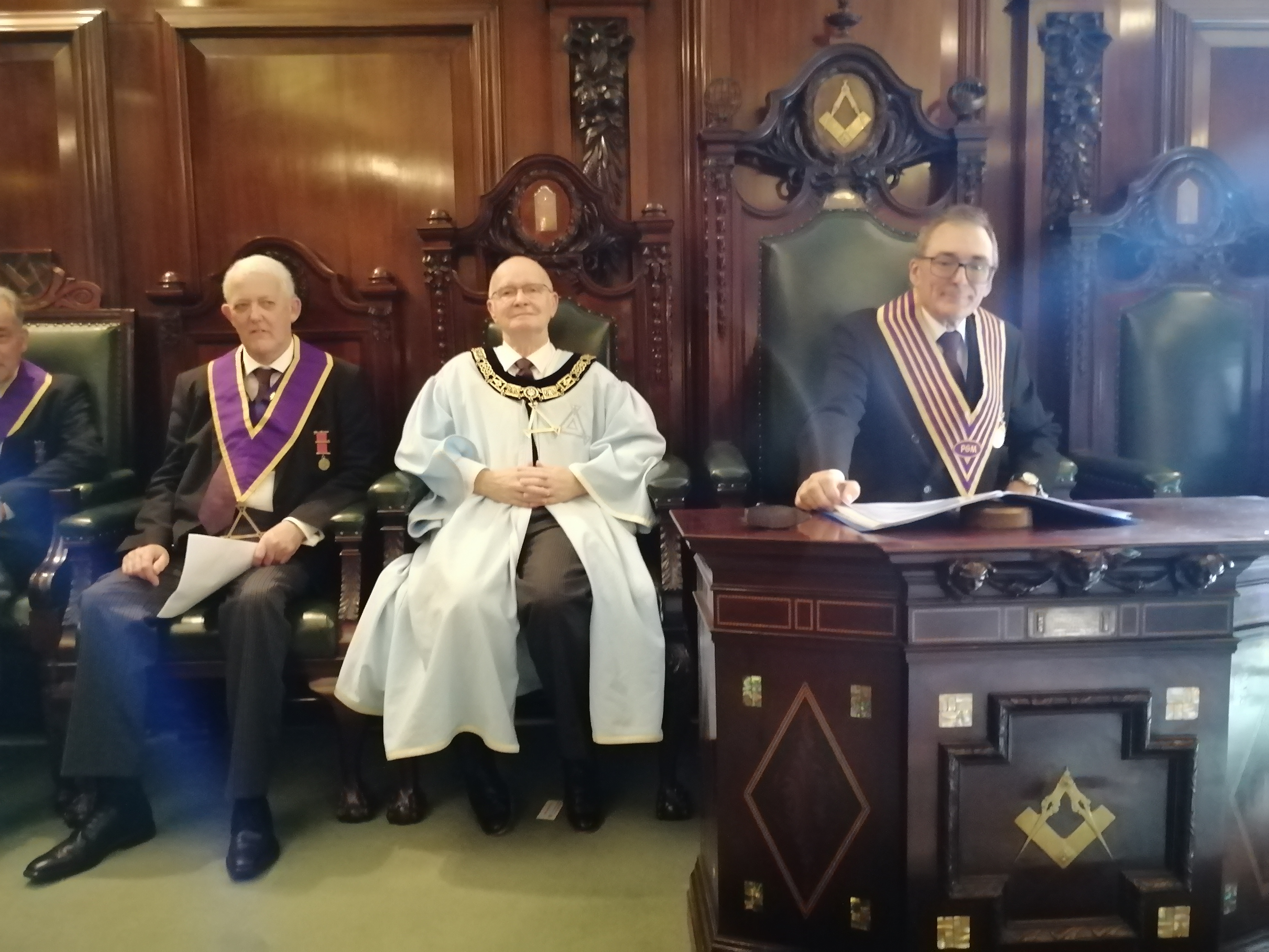 The ceremony was delivered, in an exemplary manner by Andy who was ably assisted by Ian Scott as Excellent Preceptor and Joe Simon as Worthy Preceptor. David will surely not forget tonight’s meeting.