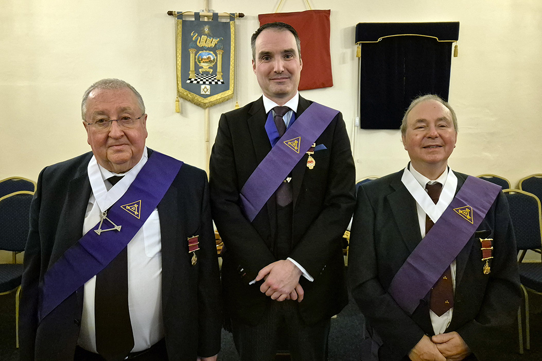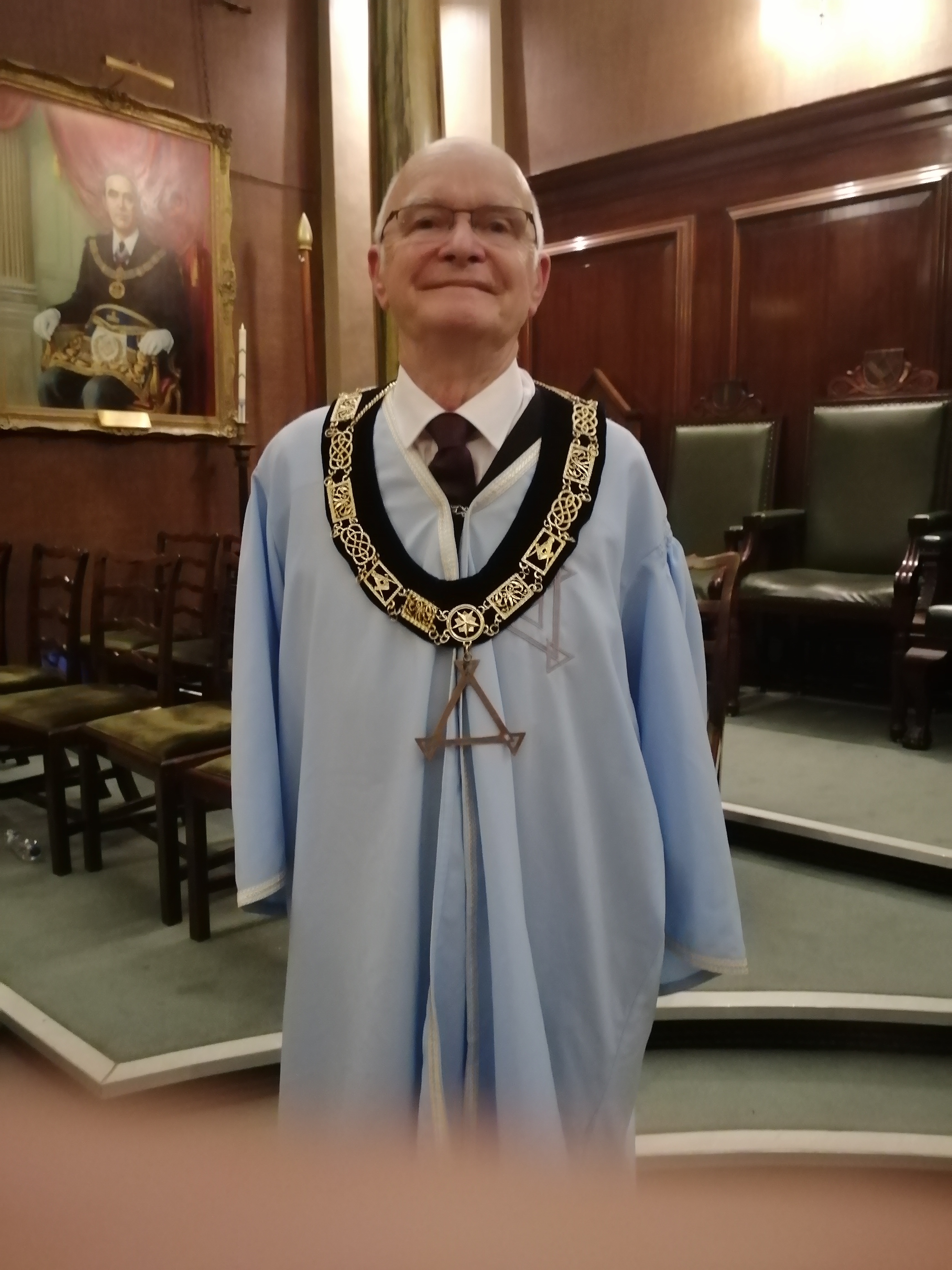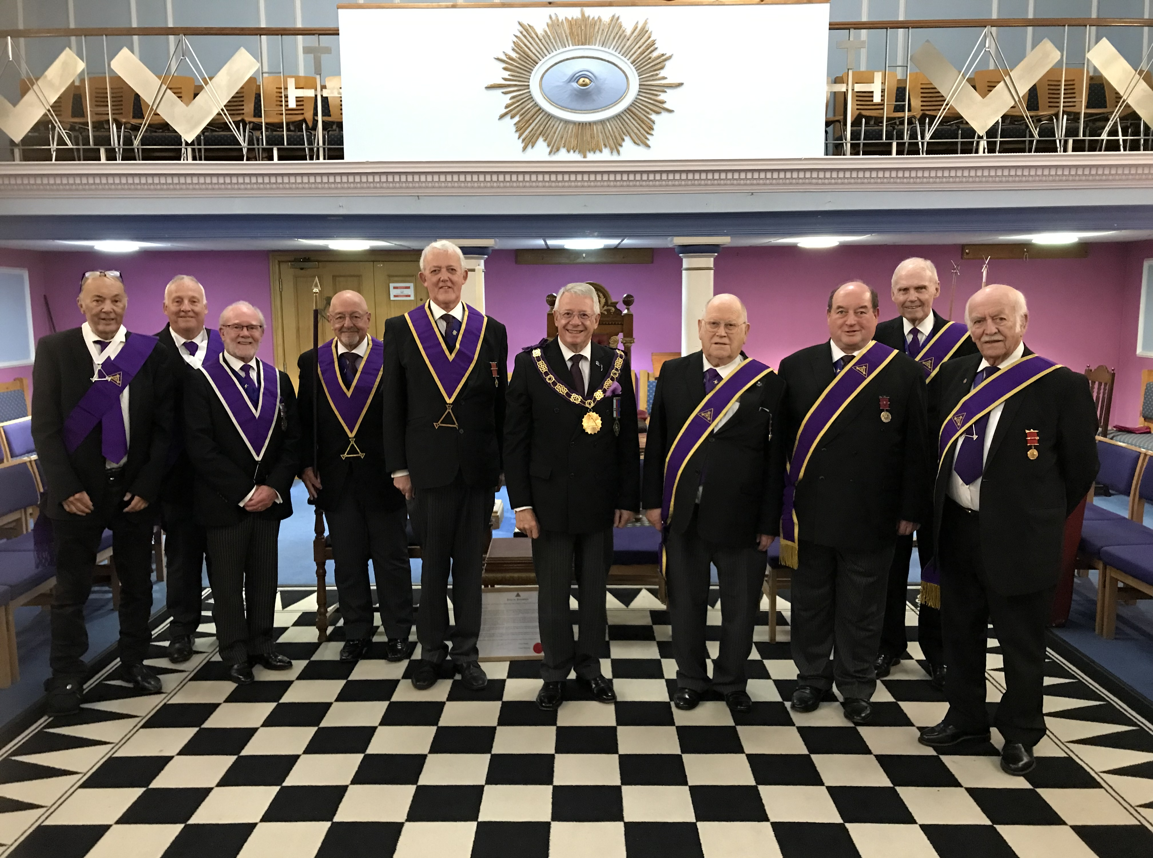 The ceremony was delivered, in an exemplary manner by Andy who was ably assisted by Ian Scott as Excellent Preceptor and Joe Simon as Worthy Preceptor. David will surely not forget tonight’s meeting.