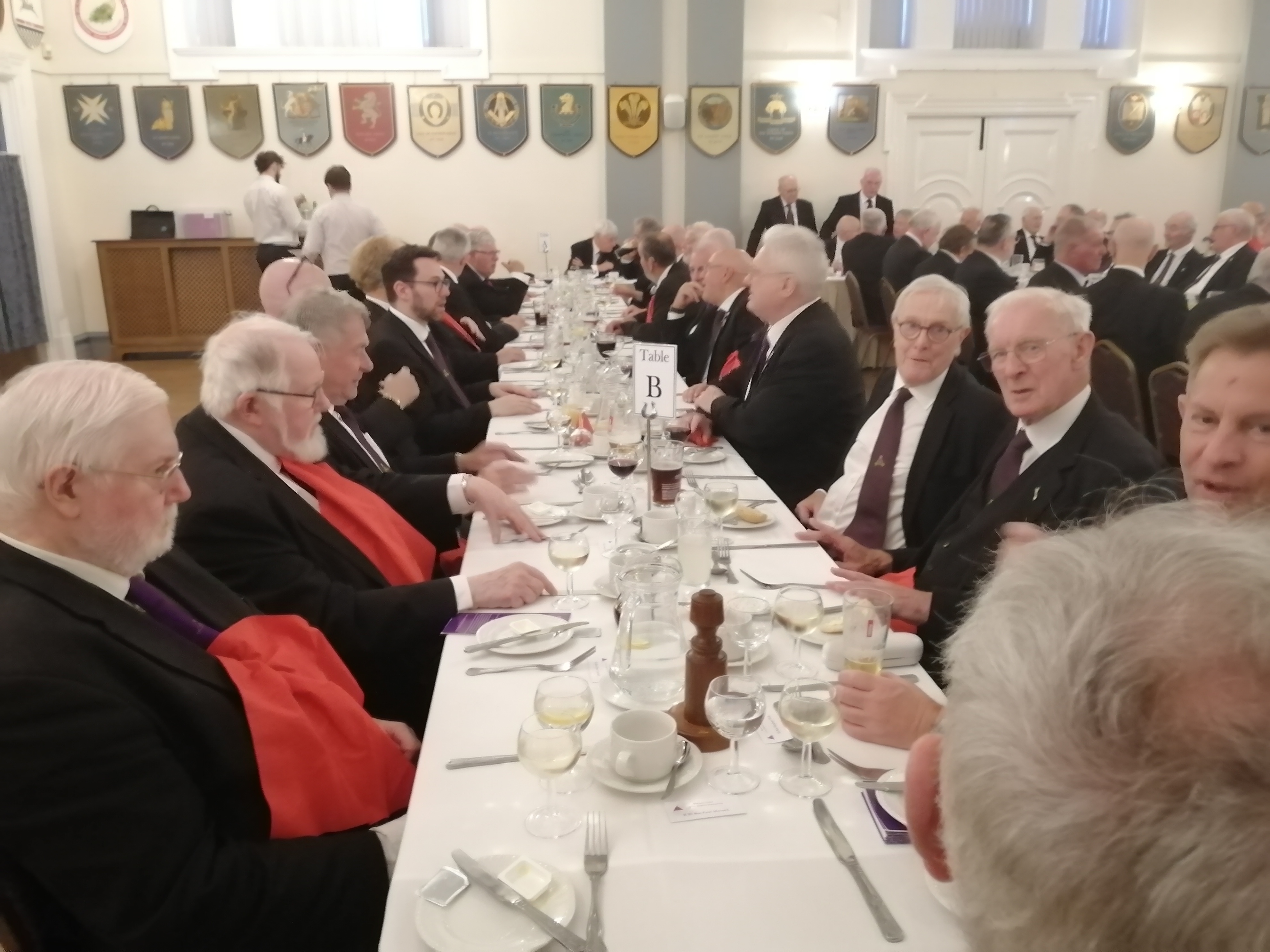 Following the Elections for Illustrious Preceptor (Eric Poole) and Treasurer (Geoff Bailey), Andy was soon closing the Conclave and we all retired to a superb festive board, where the atmosphere around the tables was full of lively chatter.