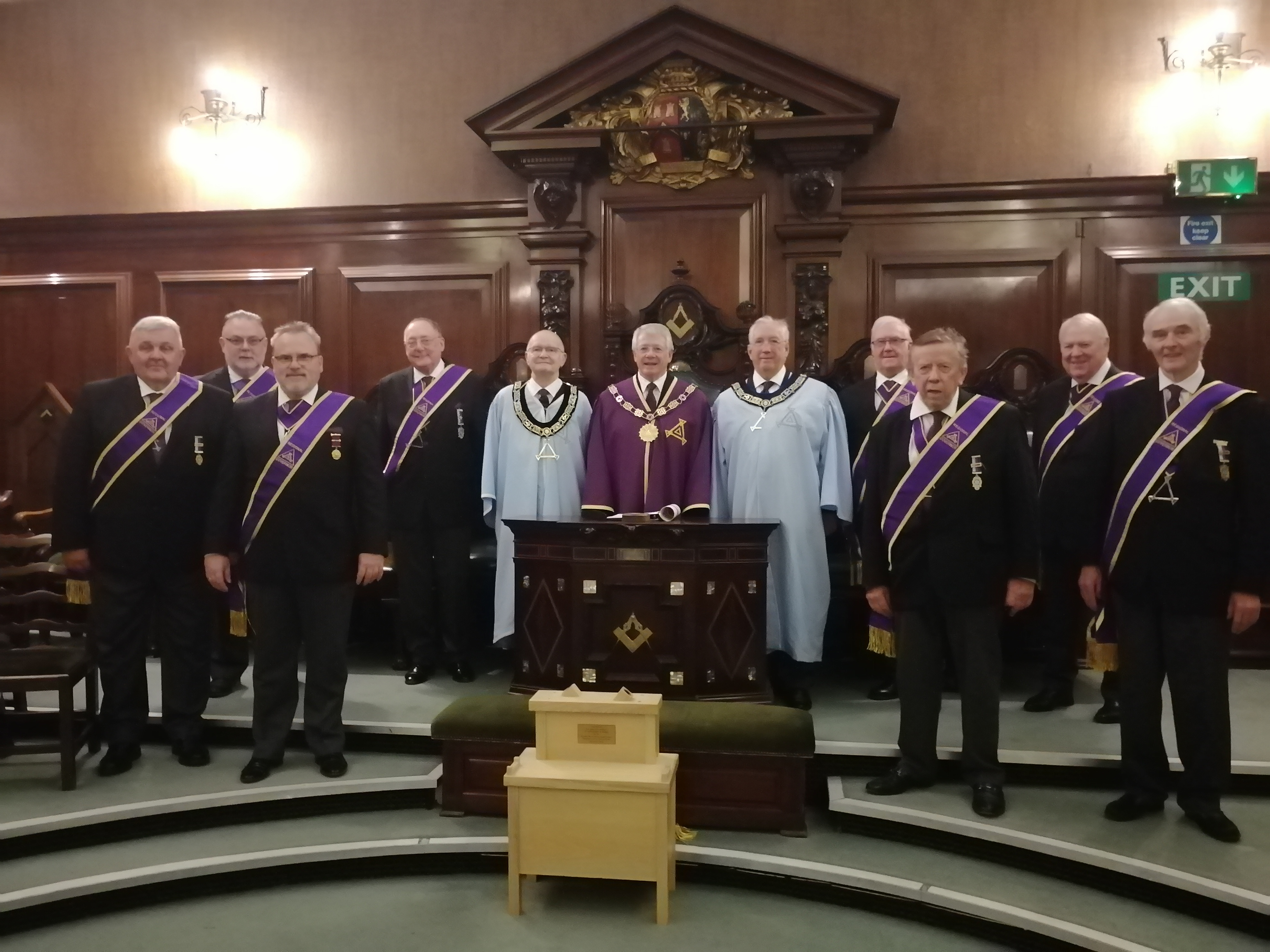 This of course included electing Ill. Preceptor for the ensuing year which proved in favour or the Excellent Preceptor, Bro. Austin Bamber, congratulations Austin it looks like a busy year ahead for you. Paul Saunders was re-elected as Treasurer and Account Examiners voted upon on.
